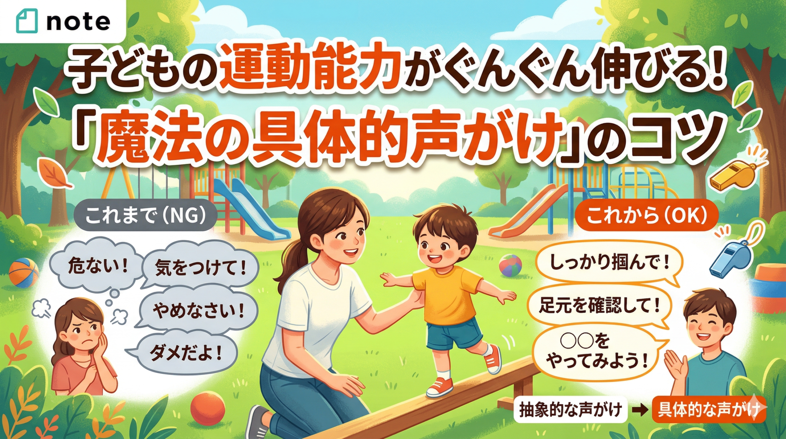 実は、子どもの運動能力を伸ばすために最も大切なのは、声がけを「抽象的」から「具体的」に変えること、たったこれだけです。