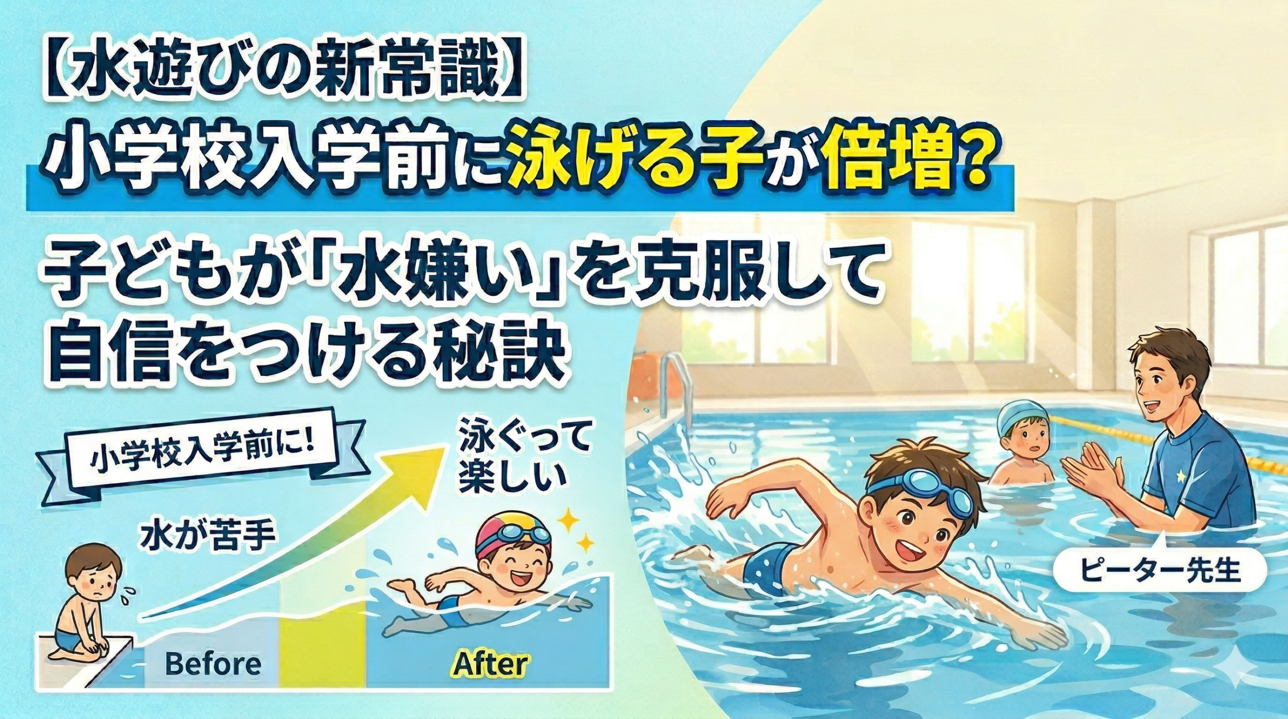 1. 小学校入学前に泳げる子が「昔の2倍」に!